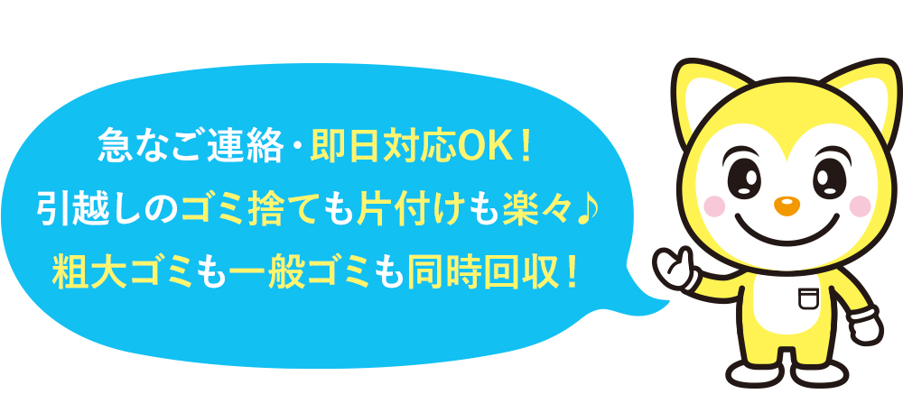 急なお引越しで即日対応が必要な場合はゴミえもんにお任せください!